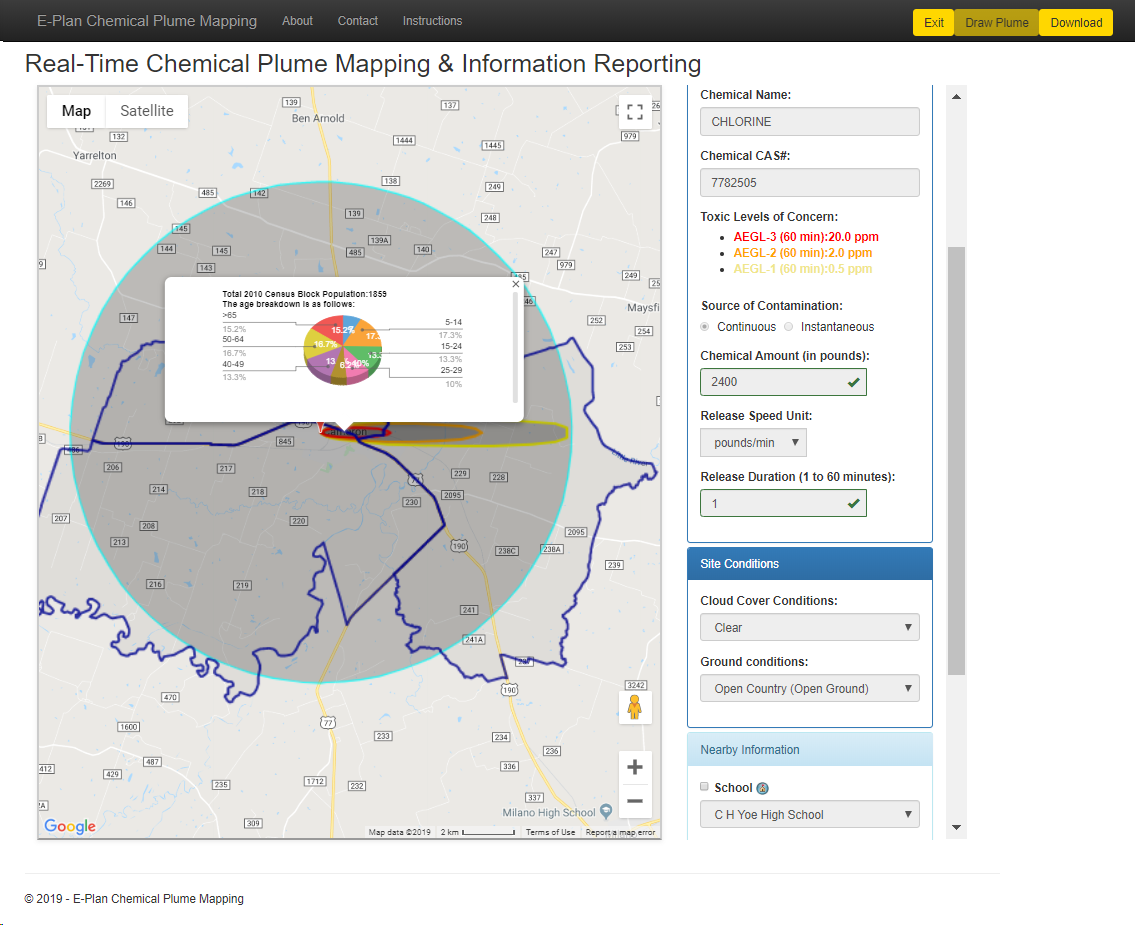 - Click on any of the blocks denoted by the polygons to get the detailed census information for that block