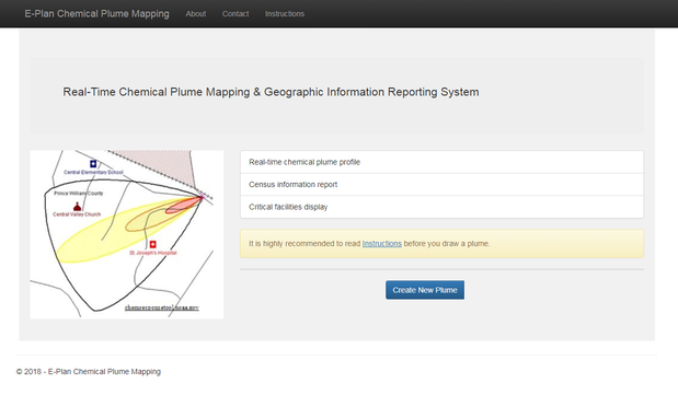 A new browser tab will open and show the “Real-Time Chemical Plume Mapping & Geographic Information Reporting System” homepage.